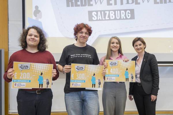 Gesundheit, Gesellschaft, Politik oder Freizeit. Die vielfältige Themenpalette beim Jugendredewettbewerb zeigte, wie breit die Interessen der jungen Salzburger gestreut sind. Organisiert wurde die Veranstaltung von Christina Zitz und Rainer Schramayr von akzente Salzburg. Das Land fördert das Projekt mit 25.000 Euro. Alle Siegerinnen und Sieger im Überblick: