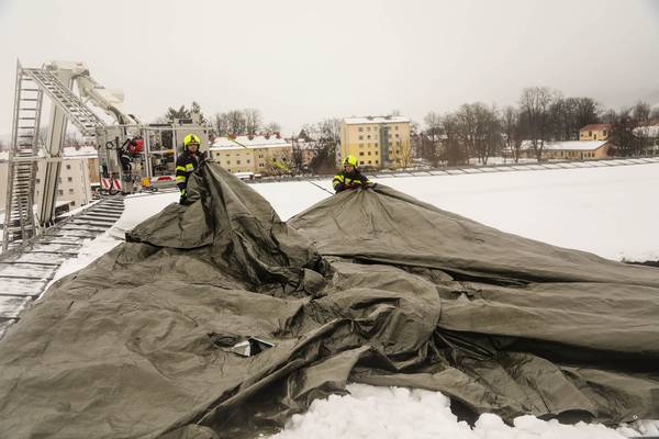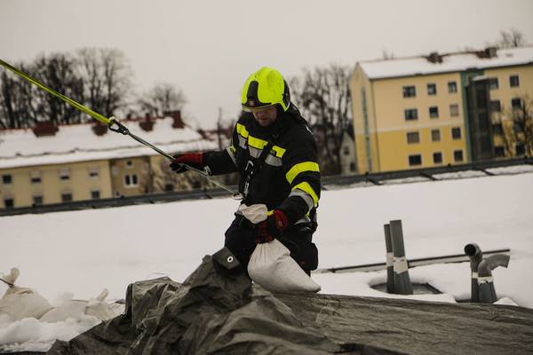 Durch den intensiven Dauerregen drang über das Dach in einem Seniorenwohnheim Wasser ins Gebäude ein. Das betroffene Dach wurde mittels Plane abgedeckt und mit Sandsäcken gesichert. Insgesamt standen an den beiden Tagen über 100 Mann im Unwettereinsatz.