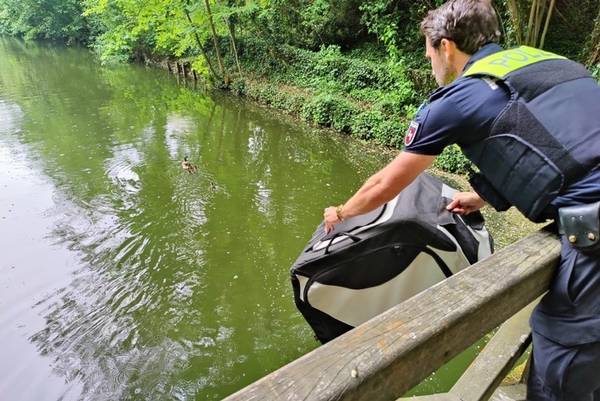 Unsere beiden Kollegen fingen die Küken ein und lockten die Entenmama somit zu den Teichen an den Wallanlagen. Dort konnten die Entenmama und ihre Küken wieder vereint werden.