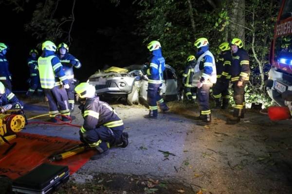 WARTBERG AN DER KREMS. Vier Verletzte hat in der Nacht auf Samstag ein schwerer Verkehrsunfall in Wartberg an der Krems (Bezirk Kirchdorf an der Krems) gefordert, bei dem ein Auto gegen einen Baum geprallt ist. Der Unfall passierte auf der Ramwoldner Straße im Gemeindegebiet von Wartberg an der Krems. Ein mit vier Personen besetzter PKW krachte kurz nach Mitternacht gegen einen Baum an einem Waldrand. Die Einsatzkräfte von Feuerwehr und Rettungsdienst wurden anfangs zu einem unklaren Verkehrsunfall alarmiert. Wenig später war klar, dass vier Personen beteiligt waren und der Lenker im Unfallfahrzeug eingeklemmt war. Die Einsatzkräfte der Feuerwehr befreiten den eingeklemmten Fahrzeuglenker mittels hydraulischem Rettungsgerät. Die Verletzten wurden nach der Erstversorgung ins Klinikum Wels beziehungsweise Pyhrn-Eisenwurzen Klinikum Kirchdorf gebracht.