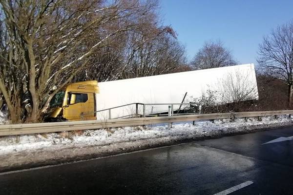 Pulheim : B59 - LKW-Unfall endet im Pulheimer Bach