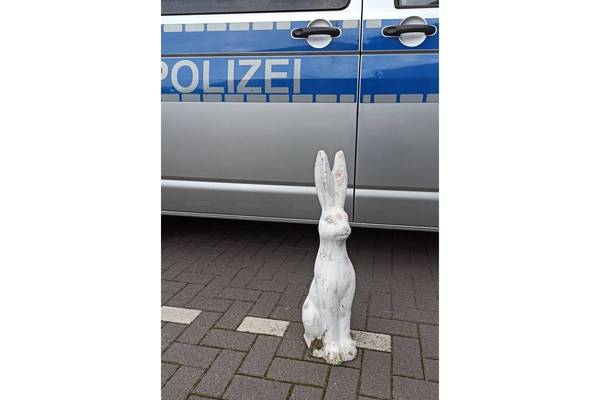 Auf der Kirchstraße stand ein 40 cm großer, weißer Hase. Die Polizistinnen und Polizisten haben dem "Tier" sofort geholfen und es mit zur Wache genommen. Dort wartet der Hase sehnsüchtig auf seinen Eigentümer.