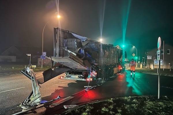 Der 56-jährige Fahrer des Lkw blieb unverletzt. Der Auflieger wurde erheblich beschädigt (Fotos).