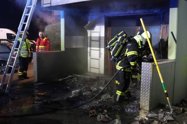 Leonding: Drei Feuerwehren bei Brand einer Müllinsel unter einem Mehrparteienwohnhaus im Einsatz