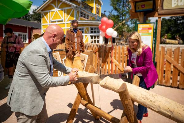 Filip de Witte, Geschäftsführer des Familyparks, erläutert in seiner Eröffnungsrede die Bedeutung der neuen Bahn für den geplanten Ausbau des Freizeitparks: