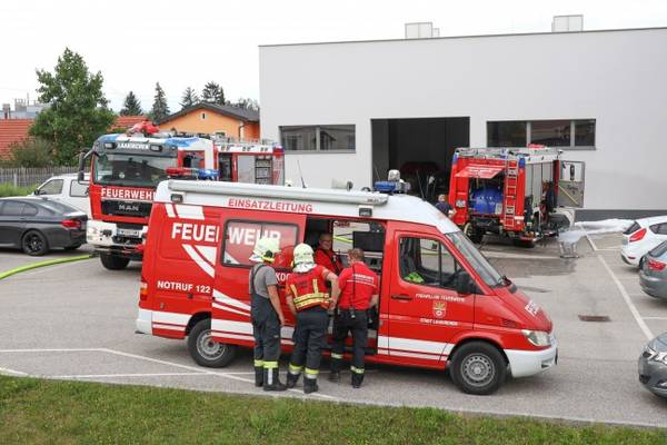 Laakirchen: Feuerwehr bei Brand von Schleifschlamm in einem Unternehmen im Einsatz