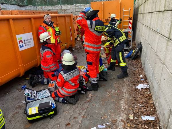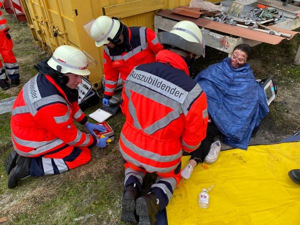 Am Donnerstag, 11.01.2024, stand bei der Feuerwehrschule der Berufsfeuerwehr Minden ein 24-stündiger Übungstag auf dem Stundenplan. Insgesamt 20 angehende Brandmeister*innen und sechs angehende Notfallsanitäter*innen fuhren acht Übungseinsätze im Stadtgebiet Minden. So wurde beispielsweise ein angenommenes Szenario bei den Städtischen Betrieben Minden abgearbeitet, bei dem zwei Personen eingeklemmt waren. Auf dem Betriebsgelände der Mindener Kreisbahnen durften die zukünftigen Rettungskräfte einen Massenanfall von Verletzten üben, bevor sie auf dem Gelände von Siegfried Pharma Chemikalien einen realen Containerbrand bekämpfen mussten. Bis in die Nacht folgten ein Verkehrsunfall, eine Reanimation, eine Person in Notlage, ein ausgelöster Gefahrenmelder sowie eine Türöffnung. Im Fokus des 24 h-Dienstes stand insbesondere die Zusammenarbeit von Feuerwehr und Rettungsdienst. Die Feuerwehr Minden bedankt sich bei allen Unterstützern, die diesen Tag ermöglicht haben!