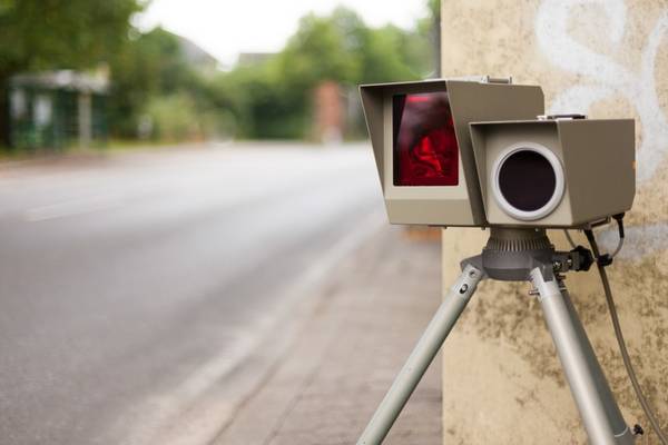 Das semistationäre Geschwindigkeitsmessgerät des Kreises Mettmann steht in der 05. Kalenderwoche auf der Velberter Straße in Heiligenhaus.