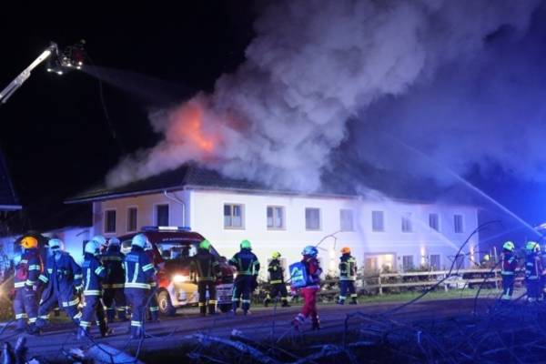 Wartberg an der Krems: Großeinsatz - Zehn Feuerwehren bei Großbrand auf Bauernhof im Einsatz