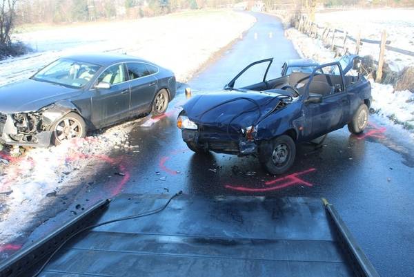 Am Samstag (18.01.) stießen zwei Autos in den Morgenstunden auf der Kattenohler Straße frontal zusammen. Nach bisherigem Stand der Ermittlungen wollte ein 71-Jähriger mit seinem Ford gegen 09:45 Uhr von der Kattenohler Straße aus kommend nach rechts auf die Staplackstraße abbiegen. Zeitgleich war ein 39-jähriger Audi-Fahrer in Richtung Delstern unterwegs. Der 71-jährige Hagener gab bei der Unfallaufnahme durch die Polizei an, dass er aufgrund von Glatteis mit dem entgegenkommenden Auto kollidierte. Bei dem Unfall zog sich der Mann schwere Verletzungen zu und musste durch eine Rettungswagenbesatzung in ein Krankenhaus gebracht werden. Zuvor musste die Feuerwehr Hagen den 71-Jährigen aus dem Fahrzeug bergen und hierfür das Dach des Autos abnehmen. Beide Autos mussten abgeschleppt werden. Die Polizei sperrte die Straße für die Dauer der Unfallaufnahme. (arn)