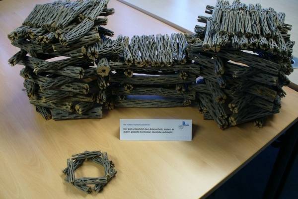 Für die angekommenen Waren sollte ein Mann aus dem Zollamtsbezirk Weilheim Nachweise über den Wert seiner Sendung liefern. Bei der anschließenden Beschau des Pakets stellten die Zöllner gesägtes Holz von hohler und netzartiger Struktur fest, die in jeweils 10-15 cm Länge geschnitten waren.