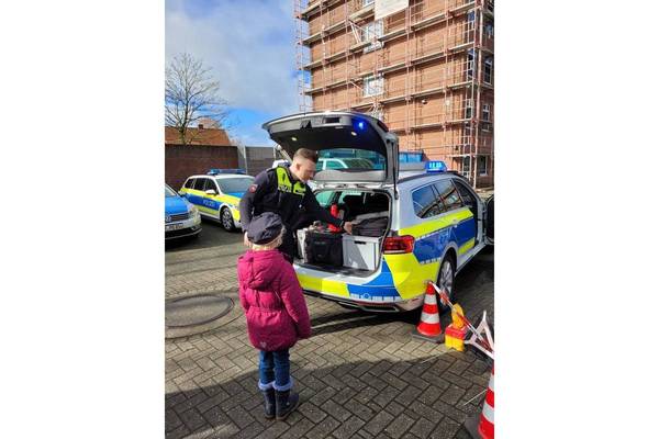 Leer: Kleine Osterfehntjer Ballonfliegerin mit ihrer Familie zu Besuch bei der Polizei