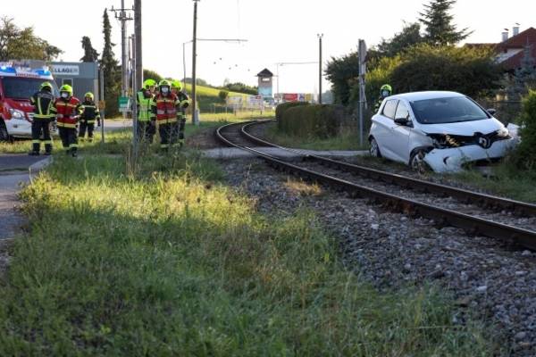 VORCHDORF. Glimpflich endete Sonntagabend eine Kollision zwischen einem Lokalbahntriebwagen und einem Elektroauto auf einem Bahnübergang in Vorchdorf (Bezirk Gmunden). Der Unfall ereignete sich auf einem unbeschrankten und mit einer "Stop"-Tafel gesicherten Bahnübergang an der Johann Wagnerstraße in Vorchdorf. "Eine 52-Jährige aus dem Bezirk Vöcklabruck wollte am 16. August 2020 gegen 18:25 Uhr in Vorchdorf auf einer Gemeindestraße mit einem PKW die Gleisanlagen der Vorchdorfer Lokalbahn queren. Trotz Vorschriftszeichen "Halt" übersah sie die aus Richtung Gmunden kommende Triebwagengarnitur beziehungsweise blieb zu nahe an den Schienen stehen. Dadurch wurde der PKW von dem Zug der Lokalbahn erfasst und gegen einen Gartenzaun geschleudert. Sowohl die PKW-Lenkerin als auch ihr 54-jähriger Beifahrer, ebenfalls aus dem Bezirk Vöcklabruck, blieben unverletzt. Im Zug befanden sich keine Fahrgäste. Der 39-jährige Triebfahrzeugführer aus dem Bezirk Gmunden blieb ebenfalls unverletzt", berichtet die Polizei. Die Feuerwehr stand bei der Bergung des verunfallten Fahrzeuges im Einsatz. Nach dem Abwarten eines weiteren Zuges konnte mit der Bergung des verunfallten Autos begonnen werden. Es wurde einem Abschleppunternehmen zum Abtransport übergeben. Die Vorchdorfer- beziehungsweise Gmundner Straße war im Bereich der Unfallstelle mehrmals kurzzeitig gesperrt und insgesamt rund eine dreiviertel Stunde erschwert passierbar. Die Feuerwehr leitete den Verkehr abwechselnd am Einsatzort vorbei. Die Johann Wagnerstraße war gänzlich blockiert.