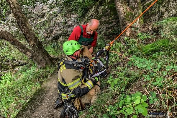 Insgesamt begaben sich zwei Einsatzkräfte, in Form eines gesicherten Abstiegs , zum Lamm. Dieses wurde gesichert und zusammen mit einem Retter in Richtung Boden abgelassen.