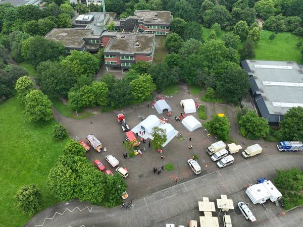 Zur Vorbereitung der Einsätze fand heute, am 01.06.24 auf dem Gelände des MSM-Gymnasiums eine Übung der Katastrophenschutzeinheiten in Krefeld statt, um den Aufbau eines solchen Behandlungsplatzes bis zur Einsatzbereitschaft zu üben. Hierbei wurden die einzelnen Stationen des Behandlungsplatzes aufgebaut und betriebsbereit gemacht: