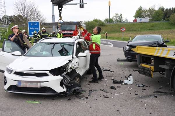ALLHAMING. Ein heftiger Kreuzungscrash hat sich Dienstagvormittag im Bereich der Autobahnanschlussstelle bei Allhaming (Bezirk Linz-Land) ereignet. Im Kreuzungsbereich der Ab- und Auffahrt von der beziehungsweise zur A1 Westautobahn mit der L534 Marchtrenker Straße in Allhaming kollidierten aus noch unbekannten Gründen zwei PKW. Die Einsatzkräfte zweier Feuerwehren, Rettung, Notarzthubschrauber und die Polizei wurden zu einem schweren Verkehrsunfall mit Personenrettung alarmiert. Entgegen der Meldungen war zum Glück niemand in den Fahrzeugen eingeklemmt oder eingeschlossen, eine Person wurde vermutlich leicht verletzt. Die Feuerwehr unterstützte das Abschleppunternehmen bei der Bergung der Fahrzeuge. Der Kreuzungsbereich war für etwa 25 Minuten erschwert passierbar.
