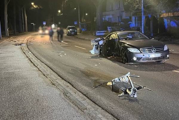 Am Montagabend (13.02.) ereignete sich in der Friedhofsallee in Lübeck in einer langgezogenen Kurve ein Verkehrsunfall mit hohem Sachschaden. Der Fahrer des verunfallten hochwertigen Mercedes AMG war vor Eintreffen der Polizei vom Unfallort geflüchtet.