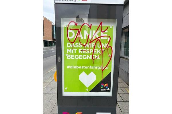 In der Nacht von Freitag auf Samstag beschädigten bislang unbekannte Täter in der Mainzer Innenstadt mehrere Fenster der Glasfassade eines Betriebsgebäudes und eine Bushaltestellenanzeige mittels roter Sprühfarbe. Die Beschädigungen wurden in den frühen Morgenstunden festgestellt.
