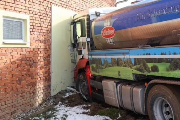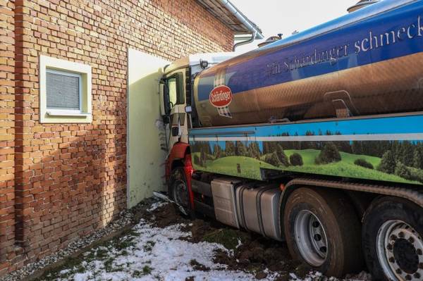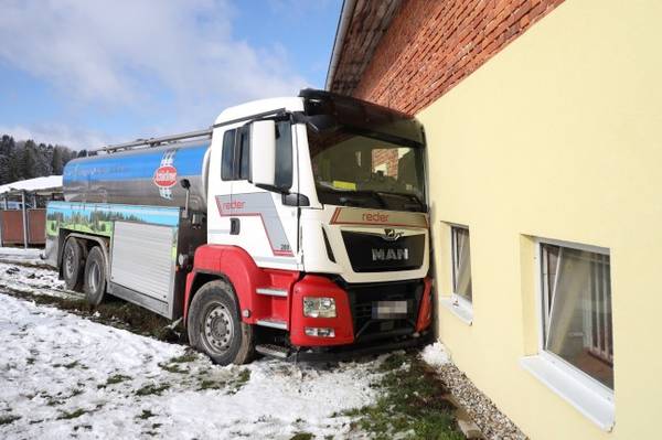 ST. AGATHA. Ein Milchtransporter ist Mittwochvormittag in St. Agatha (Bezirk Grieskirchen) bei winterlichen Straßenbedingungen gegen die Hausmauer eines Bauernhofes gerutscht. Die Einsatzkräfte wurden zu einem schweren LKW-Unfall mit eingeklemmter Person in die Ortschaft Ernleiten in St. Agatha alarmiert. Ein Milchtransporter ist bei der Zufahrt zu einem Bauernhof bei tiefwinterlichen Straßenbedingungen ins Rutschen gekommen und gegen die Fassade des Bauernhofes geschlittert. Entgegen erster Meldungen war zum Glück niemand eingeklemmt, der Lenker blieb ersten Angaben nach unverletzt. Der Einsatz für die Einsatzkräfte war nach rund einer halben Stunde wieder beendet.