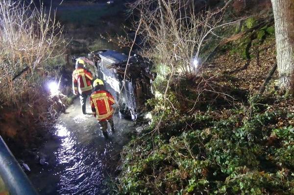 Oberbergischer Kreis: Mit Auto überschlagen und im Bach gelandet