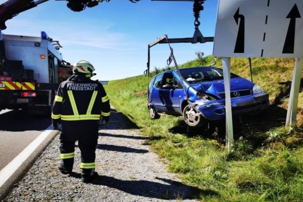 SANDL. Zu einem Einsatz nach Sandl (Bezirk Freistadt) mussten Einsatzkräfte von Polizei, Rettung und Feuerwehr ausrücken. Aus bislang unbekannter Ursache konnte die tschechische Lenkerin die Kurve beim abbiegen nicht bekommen und fuhr gerade aus auf die Böschung auf. Nach der Lageerkundung verständigte die Polizei die Feuerwehr Freistadt mittels Kran, um das Auto aus dieser misslichen Lage wieder zu befreihen. Die alarmierte Rettung vom Roten Kreuz führte eine Untersuchung bei der Lenkerin und deren Beifahrerin durch, und konnte aber vor Ort bleiben. Nach zirka einer Stunde konnte der Einsatz wieder beendet werden.