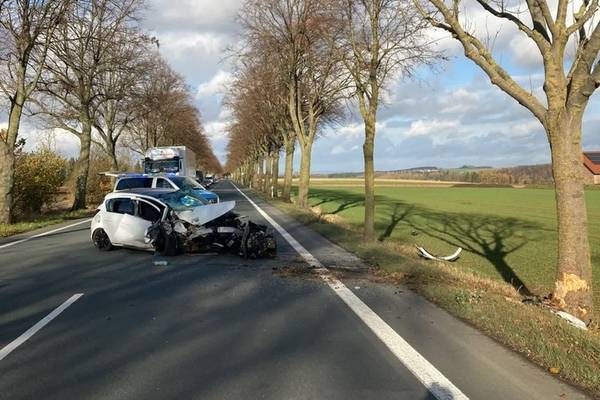 Aus derzeit ungeklärten Gründen kam der Opel gegen 13.10 Uhr nach rechts von der Fahrbahn ab und prallte gegen einen Baum. Der erheblich beschädigte Corsa schleuderte dann zurück und kam mittig auf der B252 zum Stehen.
