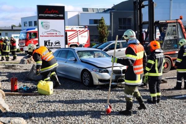 EBERSCHWANG. Ein schwerer Verkehrsunfall hat sich Montagfrüh auf der Hausruckstraße bei Eberschwang (Bezirk Ried im Innkreis) ereignet. Ein Auto ist aus bisher unbekannten Gründen von der Hausruckstraße abgekommen und gegen größere Steine vor einem Autohaus geprallt. Das Auto kam dann in Seitenlage zum Stillstand. Drei Feuerwehren wurden zum Verkehrsunfall mit eingeklemmter Person alarmiert. Der Lenker konnte schließlich jedoch ohne hydraulischem Rettungsgerät aus dem Fahrzeug befreit werden. Die Fahrzeugbergung wurde mit einem Stapler des ansässigen Betriebes durchgeführt. Die Hausruckstraße war rund eine halbe Stunde nur einspurig befahrbar, die Feuerwehr leitete den Verkehr abwechselnd an der Unfallstelle vorbei.