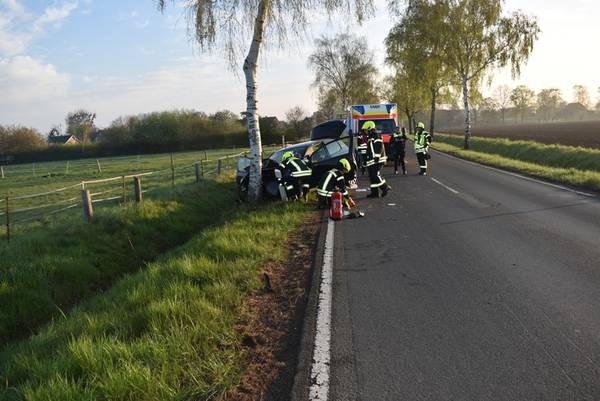 Helpsen (ots) - (ma) - Ein 22-jähriger Pkw-Fahrer aus Nordsehl ist heute Morgen gg. 06.45 Uhr auf der Kreisstraße 18 zwischen Südhorsten und Gelldorf aus bislang unbekannten Gründen plötzlich nach rechts von der Fahrbahn abgekommen und frontal mit einem dortigen Straßenbaum kollidiert.