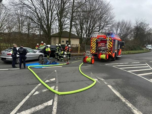 Am heutigen Dienstag, den 31.12.2024 kam es gegen 12:20 Uhr auf der Mintarder Straße in Mülheim zu einem schweren Verkehrsunfall. Aus bislang ungeklärter Ursache kollidierten im Kreuzungsbereich zur Landsberger Straße zwei Fahrzeuge frontal. In Folge des Unfalls wurden insgesamt drei Personen verletzt. Zwei von ihnen wurden schwer verletzt und mussten durch die Feuerwehr mittels technischem Gerät aus dem Fahrzeug befreit werden. Ein weiterer Unfallbeteiligter wurde leicht verletzt. Alle drei Patienten wurden nach umfassender Erstversorgung vor Ort in umliegende Krankenhäuser transportiert. Durch die Einsatzkräfte wurden auslaufende Betriebsstoffe abgestreut und die Fahrbahn gereinigt. Die Feuerwehr Mülheim war mit einem Hilfeleistungszug, drei Rettungswagen, sowie einem Notarzteinsatzfahrzeug vor Ort. Der Einsatz konnte nach rund einer Stunde beendet werden.