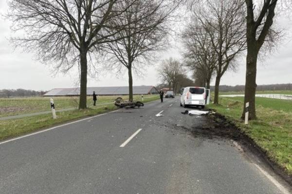 Hagen im Bremischen/Bramstedt. Am heutigen Dienstagnachmittag (20.02.2024) kam es gegen 14:45 Uhr auf der Landesstraße 134 zwischen den Ortschaften Bramstedt und Bokel zu einem schweren Verkehrsunfall. Ein 44-jähriger Mann aus Vechta geriet hierbei mit einem Motorrad mit Beiwagen aus bislang unbekannten Gründen in den Gegenverkehr und kollidierte dort mit einem entgegen kommenden Transporter eines 56-jährigen Mannes es aus Hagen. Durch den Unfall erlitt der Motorradfahrer tödliche Verletzungen und verstarb noch an der Unfallstelle. Die Unfallstelle musste für die Unfallaufnahme und die Bergungsarbeiten mehrere Stunden voll gesperrt werden.