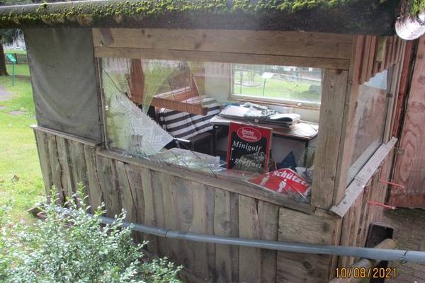 Goslar (ots) - In der Zeit zwischen So., d. 08.08.21, 18.30 Uhr und Di., d. 10.08.21, 10.30 Uhr, suchte ein bislang unbekannter Täter die Minigolfanlage im Kurpark von St. Andreasberg auf. Hier warf er mit einem dort vorgefundenen Pflasterstein ein 180x80 cm große Fensterscheibe eines Nebengebäudes der Anlage ein. Außerdem riss der Täter die Dachrinne des Gebäudes herunter. Es entstand ein Schaden in Höhe von ca. 550 Euro. Personen, die sachdienliche Hinweise geben können, werden gebeten, sich mit der Polizei St. Andreasberg, T. 05582/999970 (oder Nachricht an [email protected])in Verbindung zu setzen.