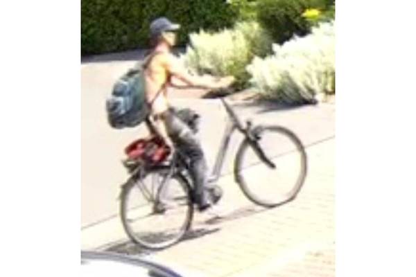 Im Verlauf der Ermittlungen konnte Videomaterial gesichert werden, welches durch Videoüberwachungskameras von benachbarten Häusern aufgezeichnet wurde. Auf diesen Bildern ist die unbekannte Person zu sehen, wie sie mit dem Fahrrad vom Grundstück wegfährt.