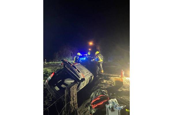 Als die ersten Einsatzkräfte eintrafen, befand sich ein PKW auf der Seite liegend im Straßengraben. Der Fahrer konnte sich aus eigener Kraft aus dem Fahrzeug befreien und wurde durch Ersthelfer betreut. Die Beifahrerin hingegen war im PKW eingeschlossen und musste durch die Feuerwehr gerettet werden.