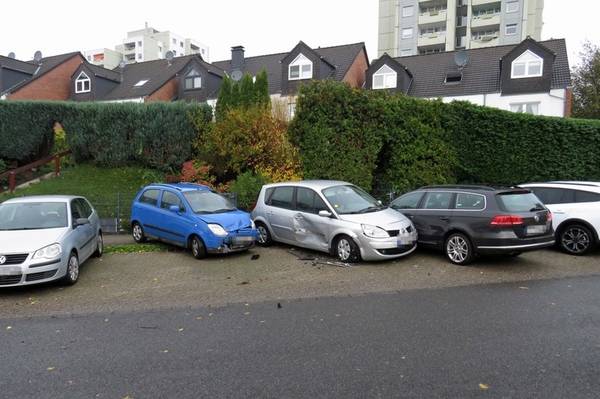 In der Nacht zu Samstag (11. November 2023) sind auf einem Parkplatz an der Straße "Am Bandenfeld" bei einem Verkehrsunfall gleich drei geparkte Autos zum Teil ganz erheblich beschädigt worden. Nach dem derzeitigen Stand der Ermittlungen muss der Unfall im Zeitraum zwischen 1 Uhr und 1:30 Uhr in der Nacht von einem noch unbekannten Autofahrer eines weißen Kastenwagens verursacht worden sein. Beschädigt wurden ein Chevrolet Matiz, ein Renault Megane und ein VW Passat. Insgesamt beläuft sich der Schaden auf eine Summe von rund 15.000 Euro.