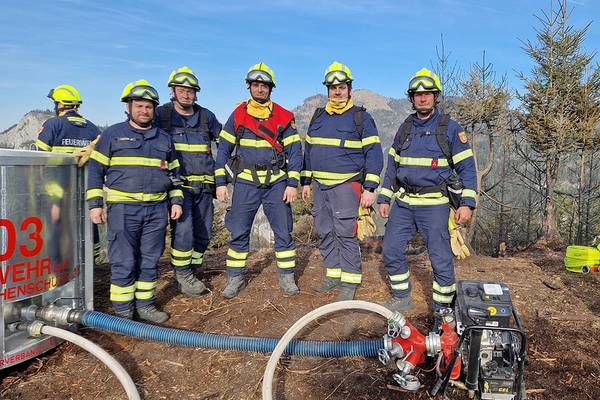 Sonntag, 9. März 2025 Im Rahmen der ersten Unterstützungsleistung wurde die Feuerwehr Blumau/Wild mit dem HLFA2-WB angefordert, welches sich in den frühen Morgenstunden auf den Weg nach Schwarzau machte. Sechs Mitglieder – bestehend aus Mitgliedern der Feuerwehr Blumau/Wild, Karlstein, Groß-Siegharts-Stadt und Frauenhofen (Bez. HO) – waren dabei eingesetzt. Am Einsatzort musste zuerst ein steiler Weg zur Anfahrt genutzt werden, um anschließend über ca. 650 Meter Fußweg den Ort des ersten Eingreifens zu erreichen. Zu Beginn mussten einige Glutnester mit Löschrucksäcken und Handwerkzeugen bekämpft werden, ehe mit Unterstützung aus der Luft mit Aluminiumbehältern eine Löschwasserversorgung eingerichtet werden konnte. Das Waldbrandfahrzeug der Feuerwehr Blumau/Wild wurde mit dem 3000 Liter fassenden Löschwassertank zwischenzeitlich zum Pendelverkehr eingesetzt. In den Nachmittagsstunden wurden die bereits abgebrannten Flächen kontrolliert und letzte Glutnester abgelöscht. Am Abend konnte die Mannschaft aus dem Bezirk Waidhofen an der Thaya den Einsatz beenden und die Heimreise antreten.