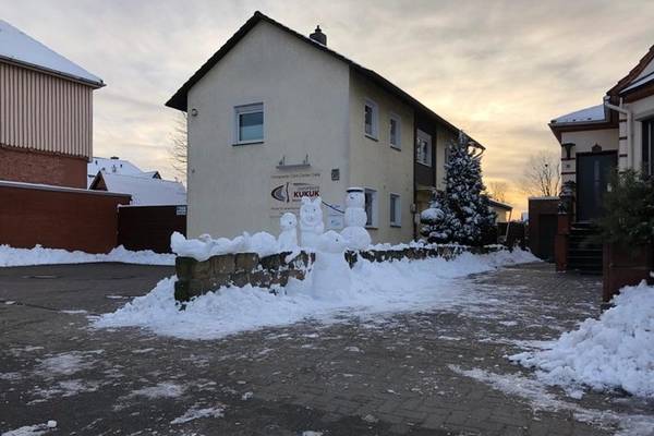 Celle: Winterlicher Schneemanns Gruss in der Harburger Heerstraße/ B 3