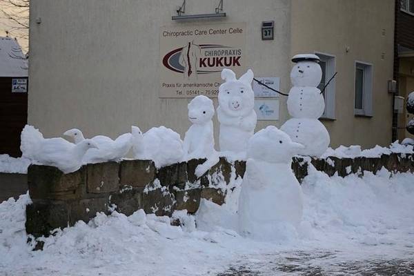 Durch eine Anwohnerin wurden auf einem privat Grundstück liebevolle Schneemänner und Schneefiguren gefertigt, welche neben einer Funkstreifenwagenbesatzung der Polizeiinspektion Celle, auch die Aufmerksamkeit weiterer Verkehrsteilnehmer erfahren.