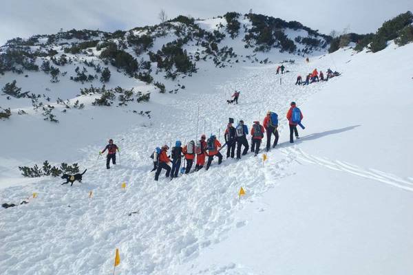 Übungsszenario: Rettung von 6 Verschütteten aus einer Lawine am Feuerkogel-Plateau.