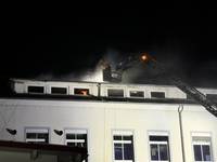 Unverzüglich wurde die Brandbekämpfung im Innen- und Außenangriff eingeleitet. Hierzu gingen zunächst zwei Trupps im Innenangriff unter Atemschutz vor. Des Weiteren wurde von außen die Brandbekämpfung mit zwei Drehleitern durchgeführt. Eine weitere Drehleiter stand in Bereitstellung. Das betroffene Gebäude war in Winkelbauweise (L-Form) errichtet.