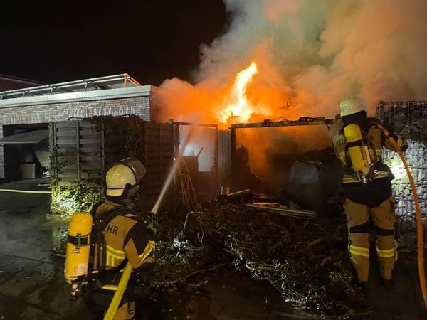 Brand eines Gartenhauses - Gasflaschen sorgen für besondere Gefahr