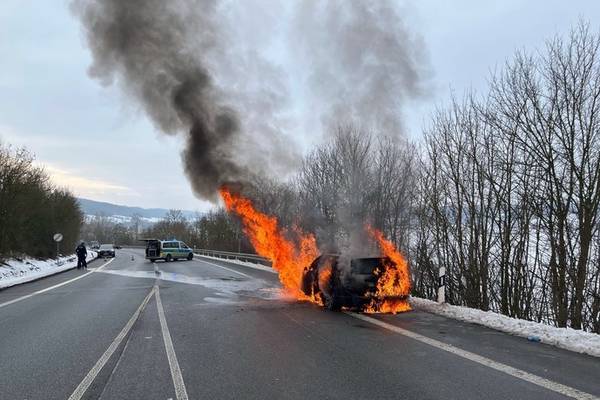 Rauchentwicklung auf der Autobahn bemerkt - PKW brennt völlig aus