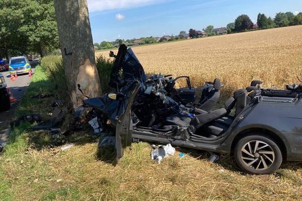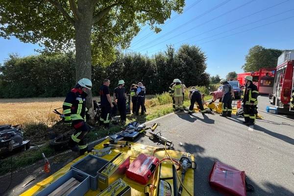 Kalkar (ots) - Um 9:57 Uhr am 15.07.2024 wurden der Löschzug Kalkar Mitte sowie die Löschgruppen Appeldorn, Hönnepel und Niedermörmter zu einem Verkehrsunfall auf der Obermörmterer Straße in Niedermörmter alarmiert. Ein PKW war frontal gegen einen Baum geprallt. Durch die Wucht des Aufpralls wurde der Motorblock aus dem Fahrzeug geschleudert und der Fahrer erlitt schwere Verletzungen. Für die patientenorientierte Rettung wurde das Dach des Fahrzeugs entfernt. Der Patient wurde an den Rettungsdienst übergeben und anschließend mit einem Rettungshubschrauber in ein Krankenhaus transportiert. Da zu Beginn unklar war, ob sich noch weitere Personen im Fahrzeug befanden, wurde eine Drohne angefordert. Bis zu deren Eintreffen durchsuchte die Feuerwehr das umliegende Feld. Es wurden keine weiteren Personen im Fahrzeug gefunden. Neben der Sicherstellung des Brandschutzes wurden auslaufende Betriebsstoffe aufgenommen. Unter der Einsatzleitung von Roland Matenaer waren 25 Feuerwehrleute über 1,5 Stunden im Einsatz. Die Polizei wurde bei der Unfallaufnahme unterstützt. Zur Unfallursache oder zur Höhe des Schadens können keine Angaben gemacht werden. Wie wir aus der Pressemitteilung der Polizei erfahren haben, ist der Fahrer des PKWs verstorben. Unser Mitgefühl gilt den Angehörigen.