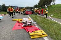 Bodenseekreis: Feuerwehr rettet zwei Fahrzeuglenker aus Fahrzeugen nach schwerem Verkehrsunfall auf K7783