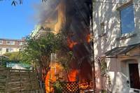 Essen: Hausfassade fängt Feuer - Flammen breiten sich bis zum Dachgeschoss aus