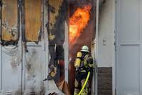 Essen: Containerbrand auf Sportplatz an der Seumannstraße - drei Container zerstört