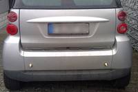 Kleinwagenheck mit Stacheln präpariert + Reifen platt gestochen + Beim Rangieren touchiert und geflüchtet